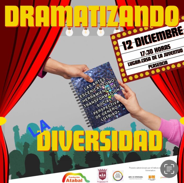 El próximo martes, 12 de diciembre, a las 17:30 horas, la Casa de la Juventud de Plasencia será el escenario del taller «Dramatizando la Diversidad»,
